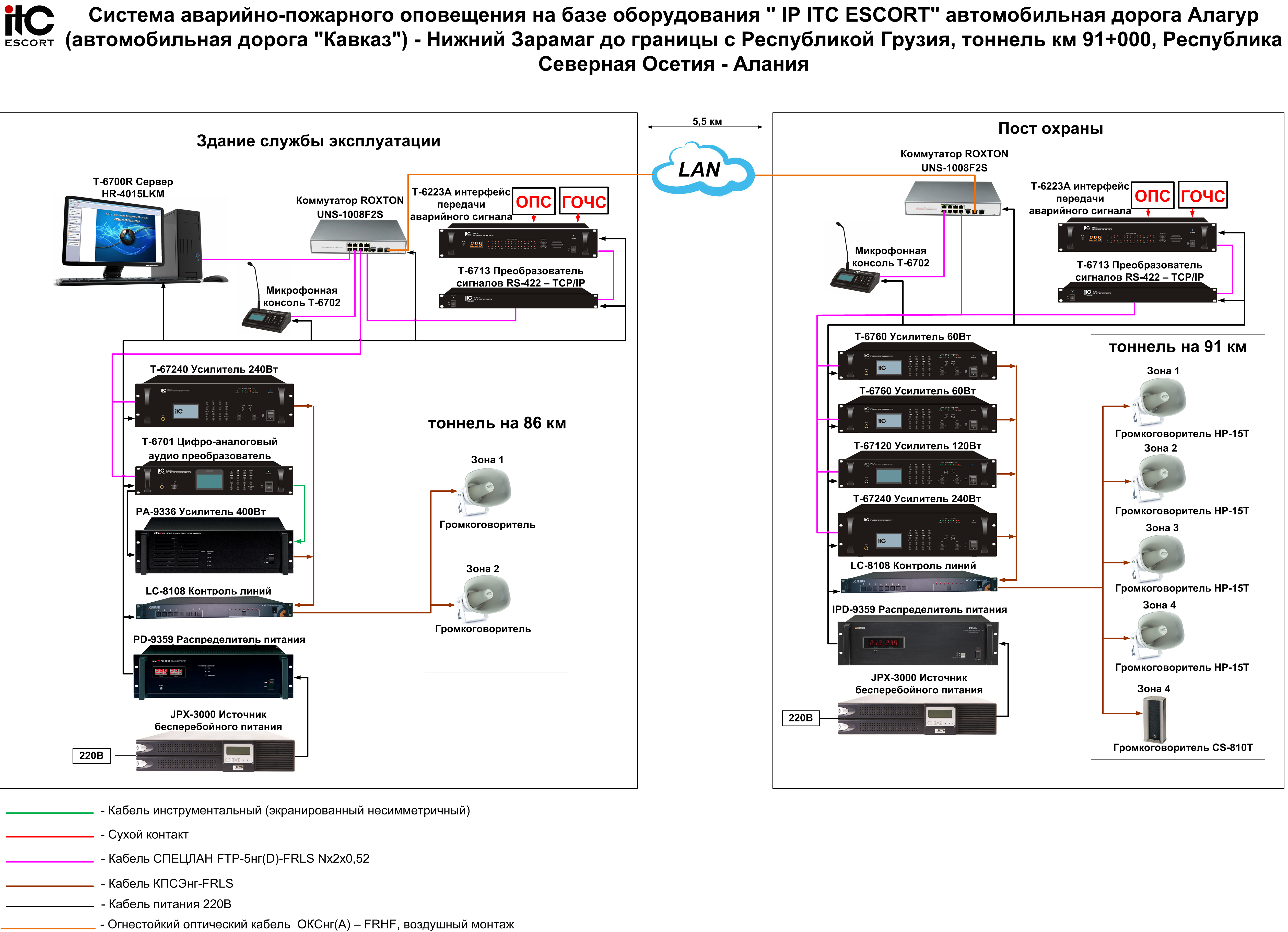 Проект системы оповещения о пожаре в тоннелях на базе оборудования IP ITC Escort